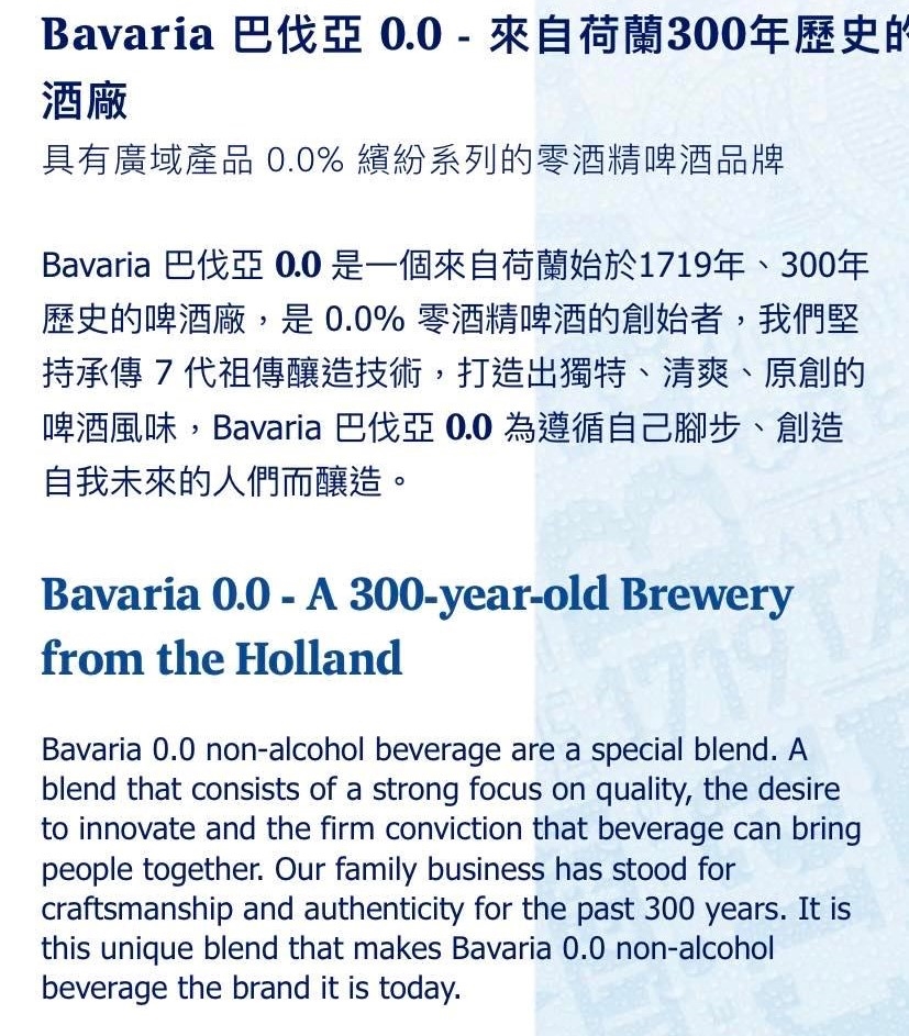 連阿拉伯國家都可以喝的無酒精啤酒,利用特別技術將啤酒酒精完全去除,喝多少都不怕酒測,但喝起來啤酒花味十足,非常皮爾森且泡沫濃郁(不是蘇打水哦!),小孩、素食者、伊斯蘭教徒、孕婦都可喝~